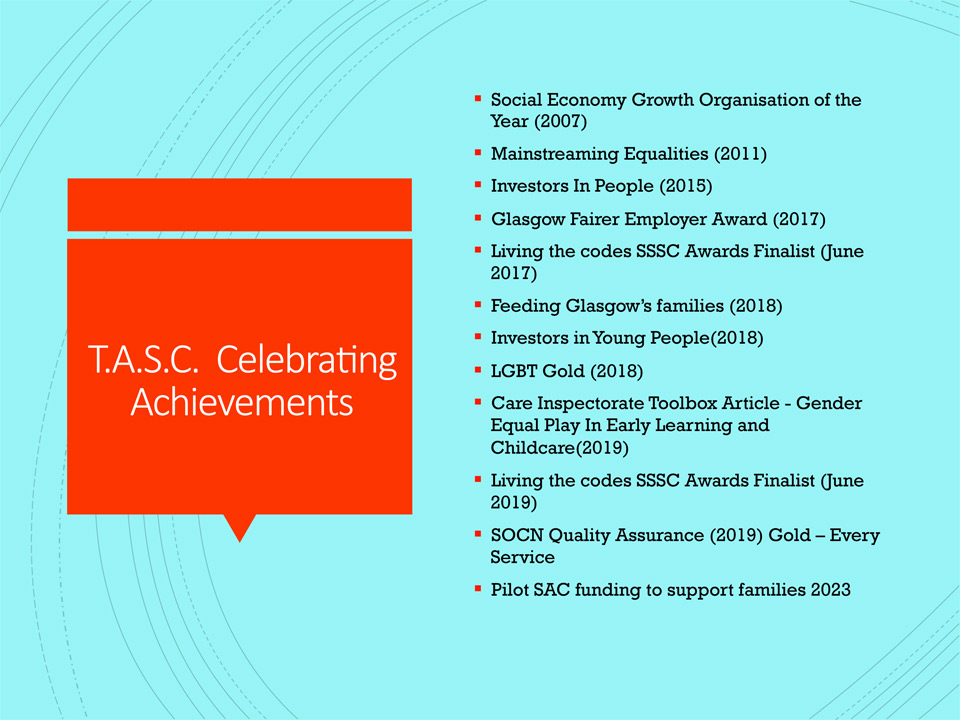 TASC is represented at the Local Childcare Forum and various other local forums including the regenerations group and the Community Council.